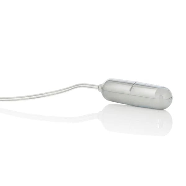 Powerful slimline vibrating bullet Plug-in jack ABS with silver plating 2 inches by .5 inch. Please note does not include power source. Sold separately.