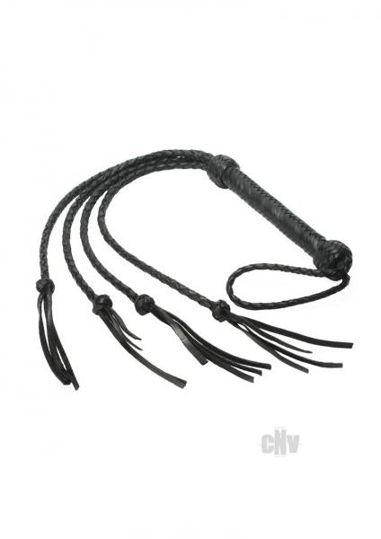 Reach back and give them a lashing like never before! Made from garment leather with a braided design, this three foot whip is unlike anything else. Once the handle ends, you will find there are four lashes, instead of one, each of which splits up again at the tip into more smaller lashes! Let the punishment begin for your little bad sub. Warning: This is a NEW item that is not in retail packaging, usually a plain box, wrapped in plastic or a poly bag.