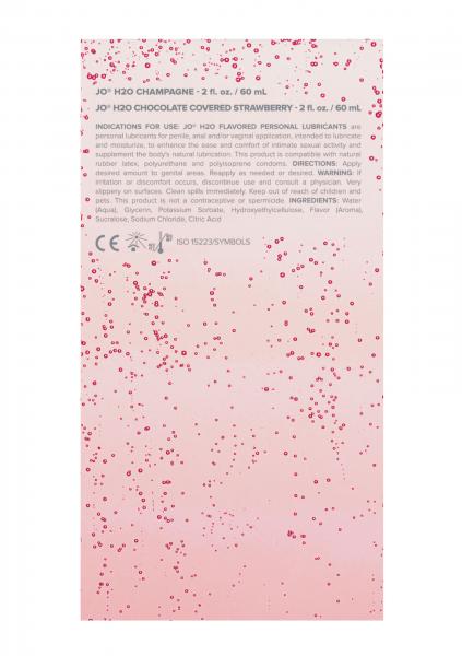 JO Sweet andamp; Bubbly is not just for Valentine`s Day. This romantic gift set includes one 2oz bottle each of our ALL-NEW Chocolate Covered Strawberry and Champagne flavored lubricants. Like all JO water-based flavors, these new formulas feel as good as they taste