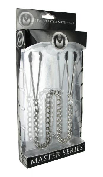These tweezer nipple clamps are great for beginners and advanced users alike. The pain threshold from these tweezer nipple clamps are adjusted by a sliding ring. The sliding ring allows you to have them on very loosely to very tight. Specifications: The clamps are about 3 inches long. The chain is 12 inches long. The overall length is about 18 inches.