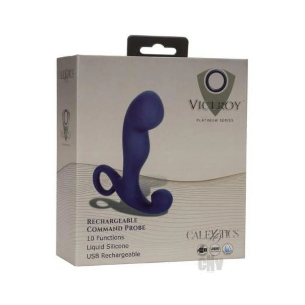 Take command of your pleasure, while the Viceroy Rechargeable Command Probe vibrates you into an orgasmic fantasy. The perfectly curved shaft, bendable design and easy retrieval ring let you deliver pinpointed pleasure with every thrust, while 10 functions of vibration deliver knee-shaking stimulation. An easy-touch control button lets you easily cycle through the 10 functions of vibration, even when things get wet and wild. The ergonomically curved probe with bulbous tip design is created to perfectly tease intimate curves, while the bendable shaft delivers knee-shaking pleasure. The easy pull retrieval ring is great for controlling stimulation for your lover, sensational solo play, or gentle removal. Take the good times to go with the security travel lock feature and the vibe will remember just how you like it with the state-of-the-art memory chip to resume on the last function used. The premium liquid silicone is body safe, unscented and phthalate free to keep your most sensitive spots, happy and healthy.