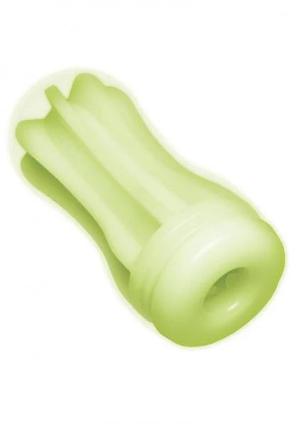 This eye-catching glow-in-the-dark stroker features a textured inner sleeve for added sensation and easy penetration, providing a realistic feel so that you can train your stamina while still enjoying the experience. The convenient size makes this masturbator easy to store and perfectly discreet for solo play, or for adding variety to your couples play.