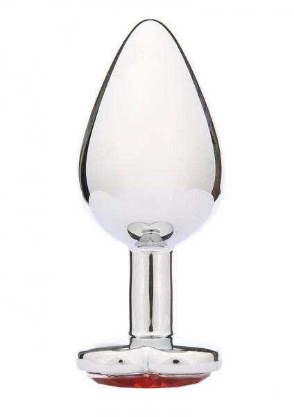 A beautiful, sleek texture with all the design elements of a classic butt plug. Sleek metal for firm and smooth penetration, radiant red heart-shaped jeweled base, and a satisfying medium size.