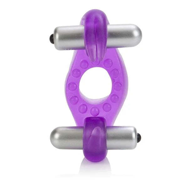 One of Cal Exotic's best sellers is now wireless! Enjoy total ecstasy with simultaneous orgasms with this soft, stretchy, comfortable enhancer with fluttering rabbit ears and teaser tail. The 4.25 inches by 1.75 inches Wireless Rockin Rabbit features removable 3 speed wireless bullets that may be used independently and batteries are included. 4.25 inches by 1.75 inches enhancer. 2.25 inches by .75 inch stimulators.